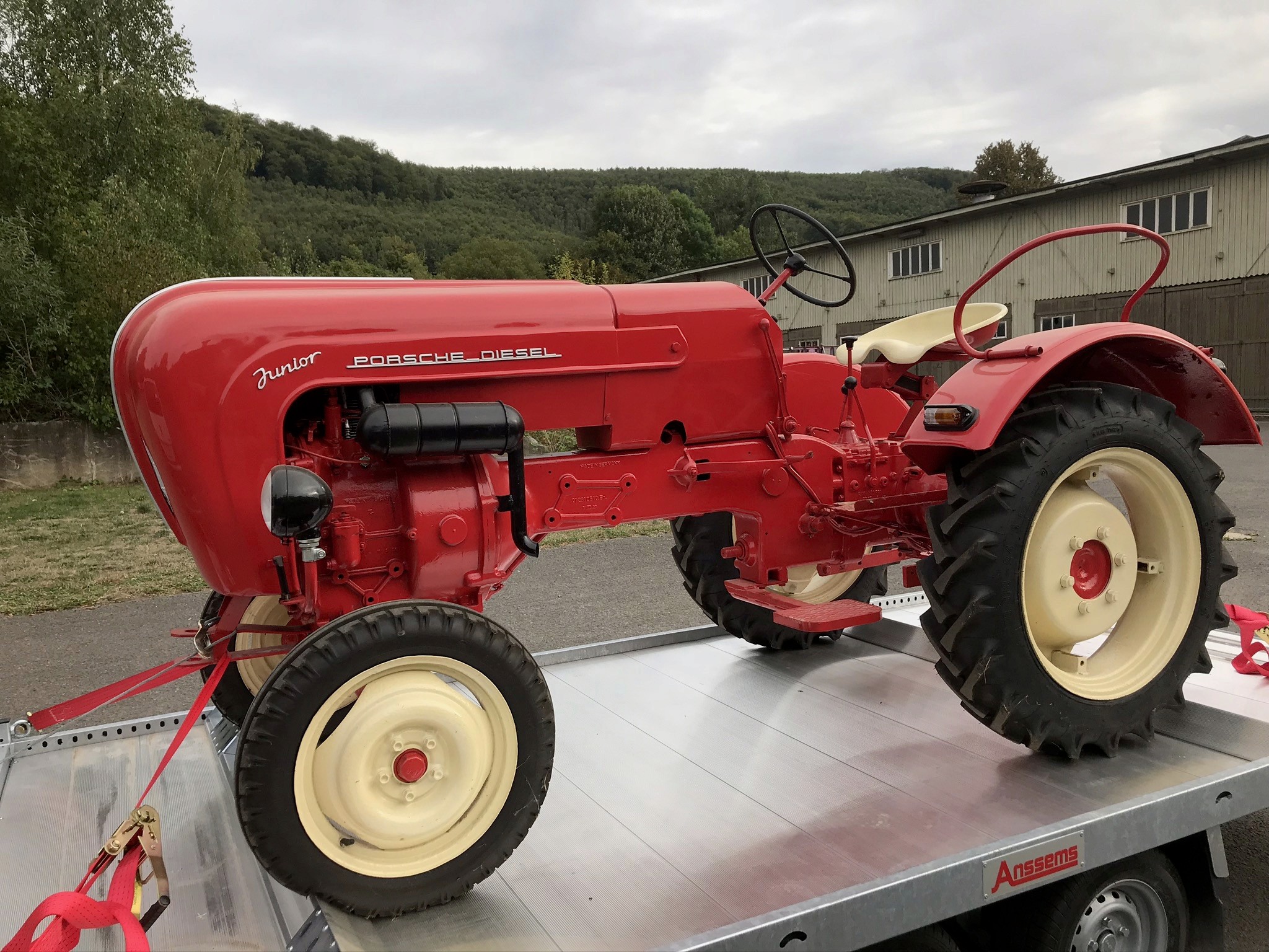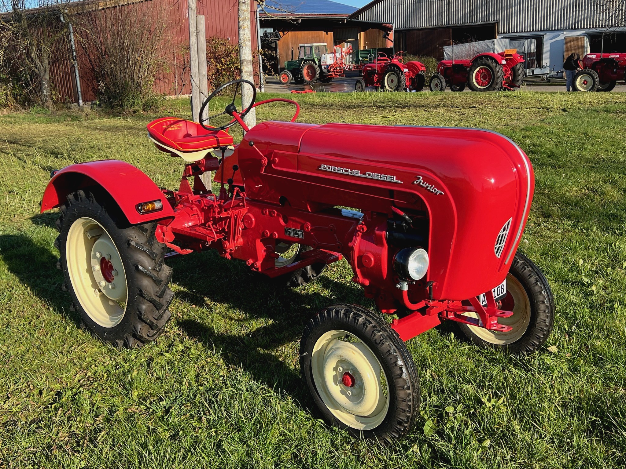 Der Porsche Junior 108, Baujahr 1959, war eines der ersten Modelle meiner Sammlung. Seine reduzierte, funktionale Bauweise und der ehrliche Antrieb haben mich von Anfang an begeistert. Mit seinem luftgekühlten Einzylinder-Dieselmotor und 10 kW Leistung bringt er alles mit, was man an Porsche-Traktoren schätzt – im kompakten Format. Der Traktor wurde im Rahmen der Sammlung sorgfältig instand gesetzt und regelmäßig bewegt. Er zeigt sich heute in einem sehr gepflegten technischen und optischen Zustand, bereit für neue Aufgaben – ob für Fahrten, für Sammler oder als zuverlässiger Klassiker auf dem Hof. Der Beifahrersitz ist funktional und macht das Erlebnis teilbar – wie es früher oft der Fall war. Er ist TÜV-abgenommen, voll straßenzugelassen und verfügt über ein aktuelles Wertgutachten, das seine Qualität und den erhaltenen Zustand bestätigt. Ich bin kein Händler, sondern ehemaliger Landwirt – dieser Traktor wurde nicht ausgestellt, sondern geschätzt. Er ist kein lauter Auftritt, aber ein starkes Stück Technik, das sich sehen und hören lassen kann. Technische Daten: – Baujahr: 1959 – Motor: luftgekühlter Einzylinder-Dieselmotor – Leistung: 10 kW – Beifahrersitz – TÜV & Straßenzulassung vorhanden – Wertgutachten vorhanden Verfügbarkeit: Einzeln zu erwerben oder als Teil meiner Porsche-Traktorensammlung. Besichtigung nach Absprache. Lieferung möglich.