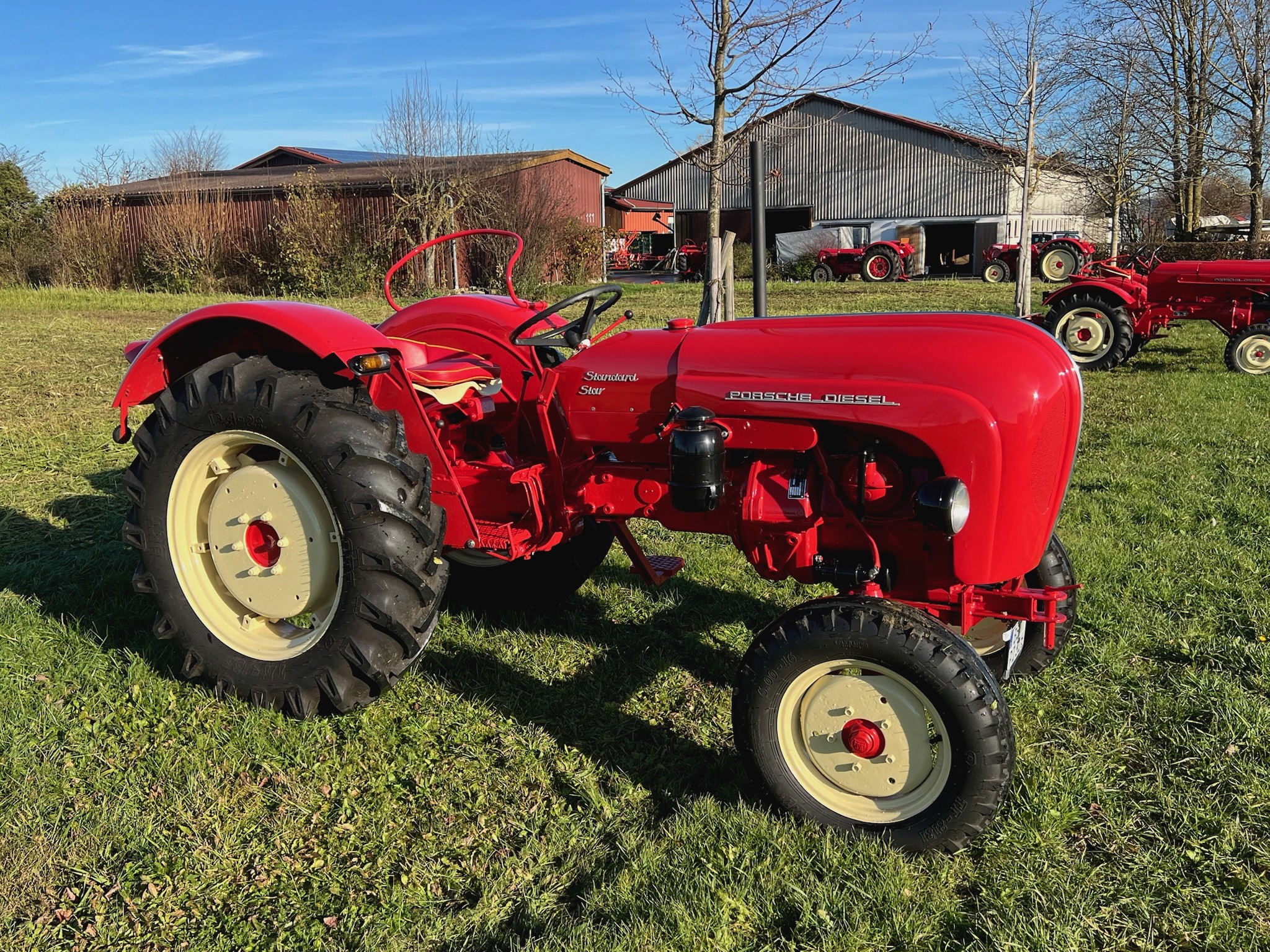 Der Porsche Standard Star 238 aus dem Jahr 1962 überzeugt durch klare Linien, robuste Technik und eine zeitlose Ausstrahlung. Er ist kein Traktor, der laut auf sich aufmerksam macht – aber sobald er startet, weiß man: Hier steckt Substanz drin. Und Erfahrung. Ein ehrliches, kraftvolles Fahrzeug mit Charakter. Ausgestattet mit einem luftgekühlten Zweizylinder-Dieselmotor mit 19 kW, Hydrauliksystem, Zapfwelle und Beifahrersitz, bringt er alles mit, was einen zuverlässigen Klassiker ausmacht. Er wurde vollständig professionell restauriert, sowohl technisch als auch optisch. Die Haube wurde aufgearbeitet, das Fahrzeug fachgerecht neu lackiert, und er präsentiert sich heute in einem glänzenden, stimmigen Gesamtbild. Der Traktor ist TÜV-geprüft, straßenzugelassen und mit einem aktuellen Wertgutachten versehen, das seinen Zustand und seine Originalität belegt. Ich selbst komme aus der Landwirtschaft – dieser Traktor wurde in meiner Sammlung nicht ausgestellt, sondern gepflegt: bewegt, gewartet, geliebt. Und jetzt ist er bereit, weiterzugehen. Technische Daten: – Baujahr: 1962 – Motor: luftgekühlter Zweizylinder-Dieselmotor – Leistung: 19 kW – Hydrauliksystem – Zapfwelle – Beifahrersitz – TÜV & Straßenzulassung vorhanden – Wertgutachten vorhanden Verfügbarkeit: Dieser Traktor kann einzeln oder als Teil meiner Porsche-Traktorensammlung erworben werden. Besichtigung nach Absprache. Lieferung möglich.