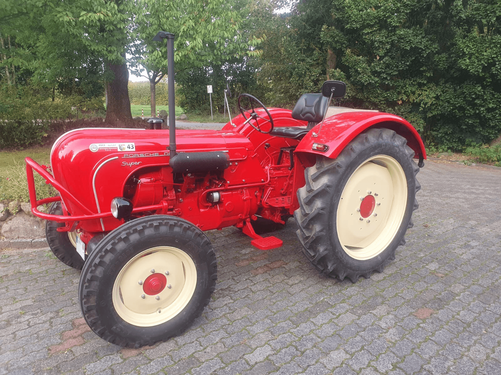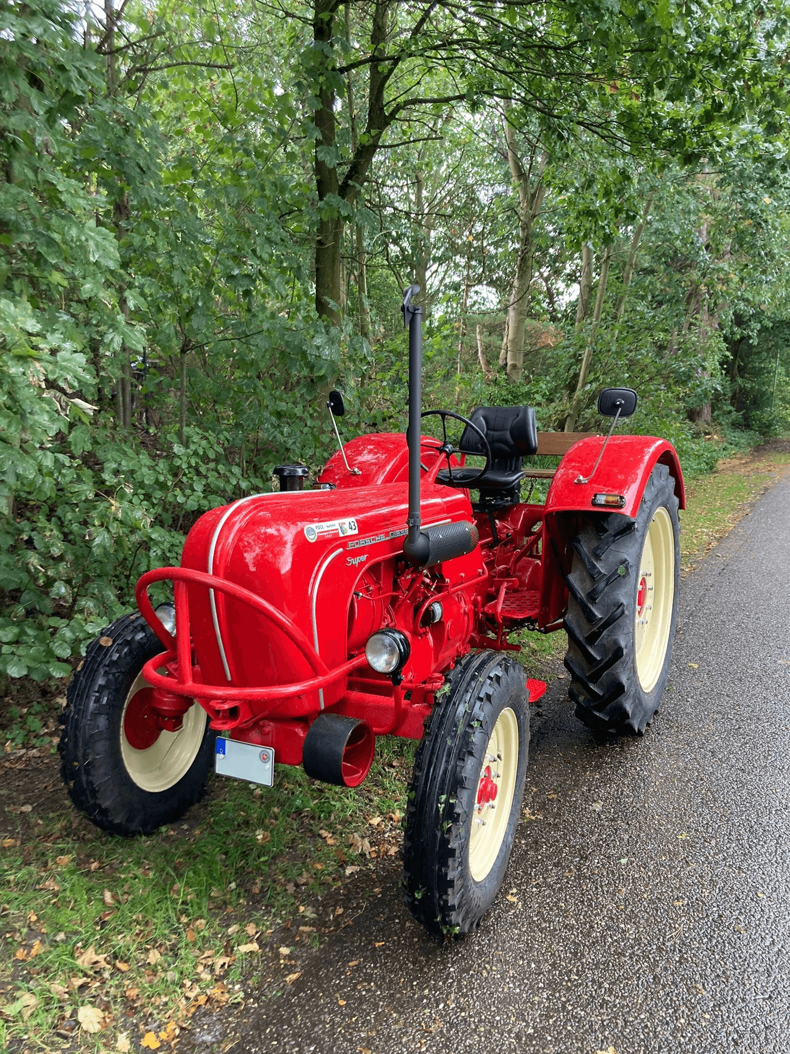 Der Porsche Super L319, Baujahr 1961, war eines der eindrucksvollsten Fahrzeuge in meiner Sammlung – kompakter als der Master 419, aber mit ebenso viel Charakter. Unter Sammlern wird er gern als der „kleine Master“ bezeichnet: ein Zylinder weniger, rund 15 cm kürzer – aber mit der gleichen Präsenz und klaren Formsprache. Sein luftgekühlter Dreizylinder-Dieselmotor liefert 29 kW Leistung, zuverlässig, kraftvoll und mit einem Klang, der sofort einzuordnen ist. Technisch ist er hervorragend ausgestattet: Hydrauliksystem, Zapfwellen vorne und hinten, eine originale Riemenscheibe, eine Sitzbank hinter dem Fahrersitz sowie ein Frontlader, der aktuell demontiert beiliegt. Ich habe diesen Traktor mit dem Fokus auf Funktion, Substanz und ehrliche Nutzung restaurieren lassen – er ist kein Showstück, sondern ein Klassiker, der lebt. Die Restaurierung wurde bewusst nicht überästhetisiert, sondern mit Achtung vor seiner Geschichte durchgeführt – Patina durfte bleiben, wo sie spricht, Technik wurde gemacht, wo sie gebraucht wurde. Der Traktor ist TÜV-geprüft, voll straßenzugelassen und mit einem aktuellen Wertgutachten dokumentiert. Ich selbst bin ehemaliger Landwirt – dieser Traktor war für mich eine Erinnerung daran, wie zuverlässig und langlebig Maschinen gebaut wurden, wenn sie mit Verstand entworfen und mit Respekt behandelt wurden. 📌 Hinweis: Der Traktor ist aktuell reserviert. Sollte die Übergabe nicht finalisiert werden, nehme ich gerne wieder Anfragen entgegen. Technische Daten: – Baujahr: 1961 – Motor: luftgekühlter Dreizylinder-Dieselmotor – Leistung: 29 kW – Hydrauliksystem – Zapfwellen vorne & hinten – Riemenscheibe – Sitzbank hinter dem Fahrer – Frontlader (demontiert beiliegend) – TÜV-geprüft & straßenzugelassen – Wertgutachten vorhanden Verfügbarkeit: Derzeit reserviert – Teil einer Sammlung, die auch als Ganzes oder in Teilen erworben werden kann. Besichtigung nach Vereinbarung. Lieferung möglich.